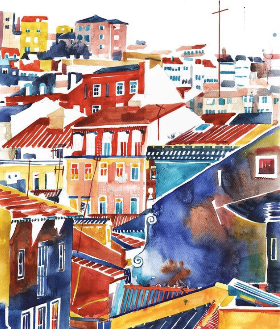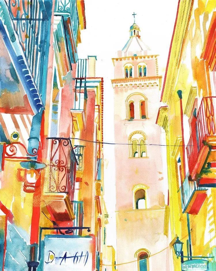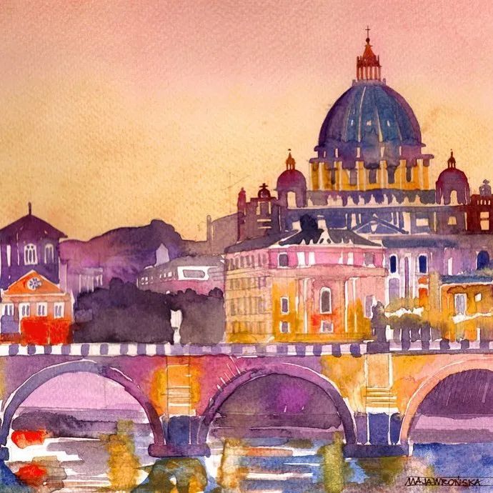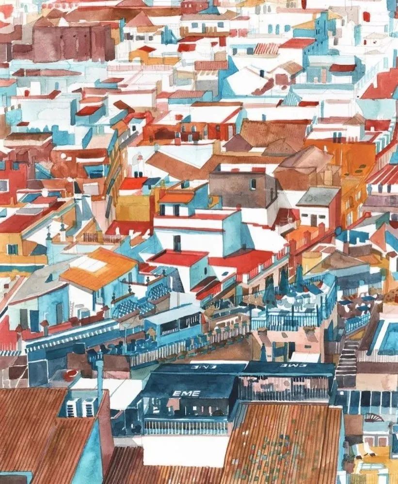 而且她能将水彩色彩运用到极致