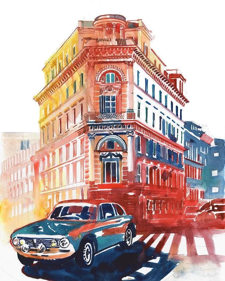 用水彩画来表现建筑