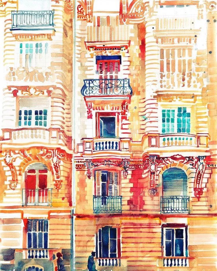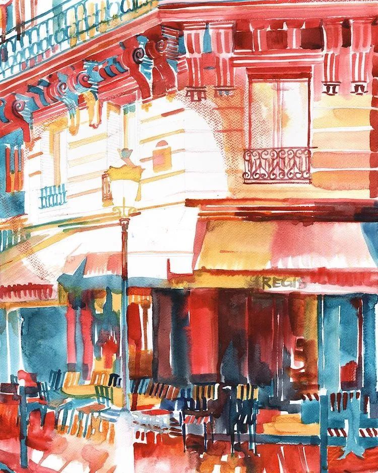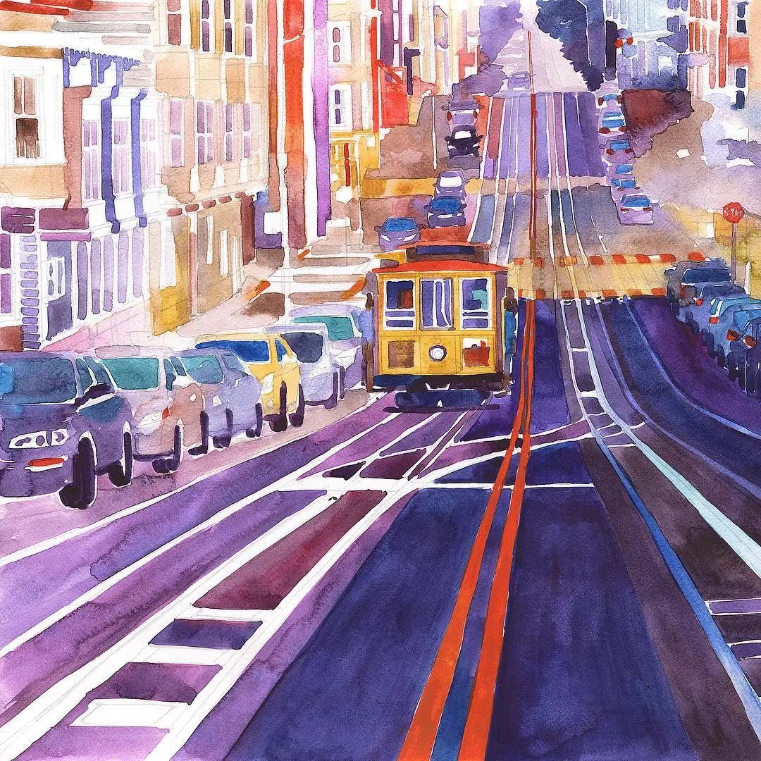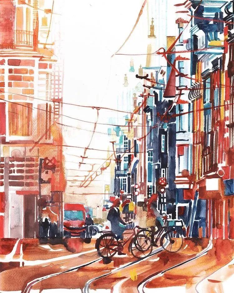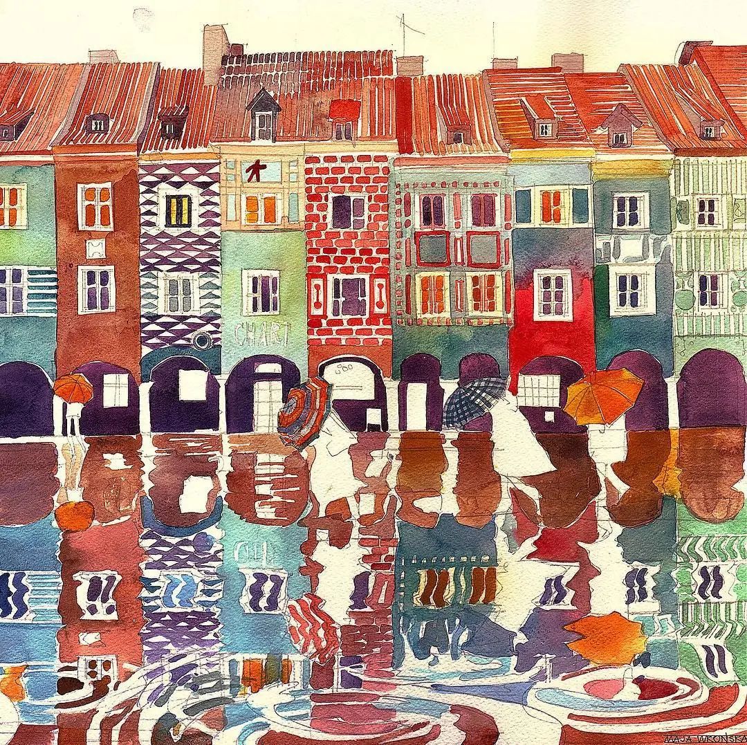 而且她能将水彩色彩运用到极致