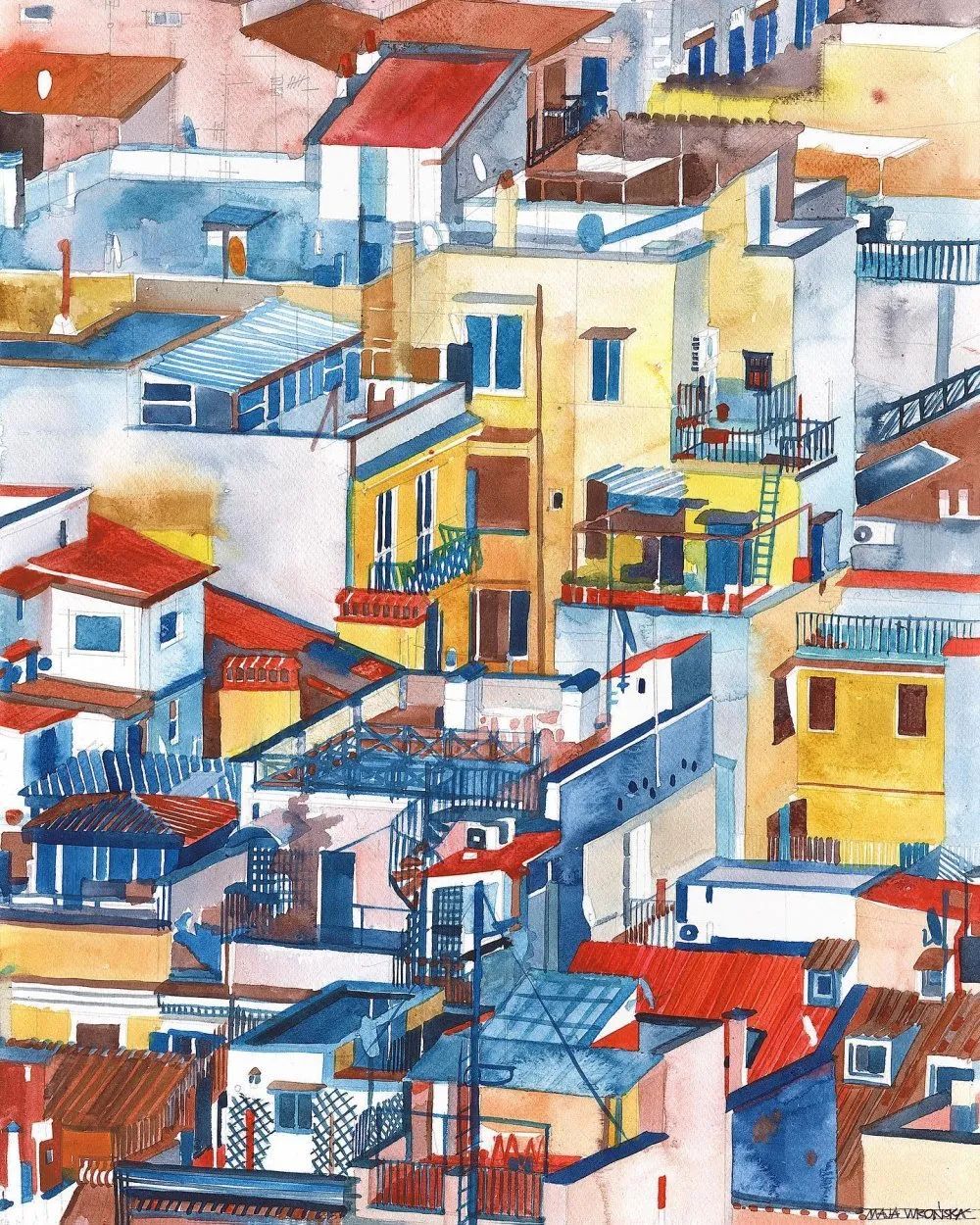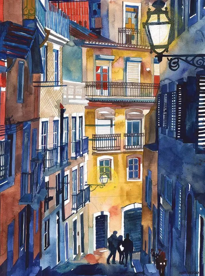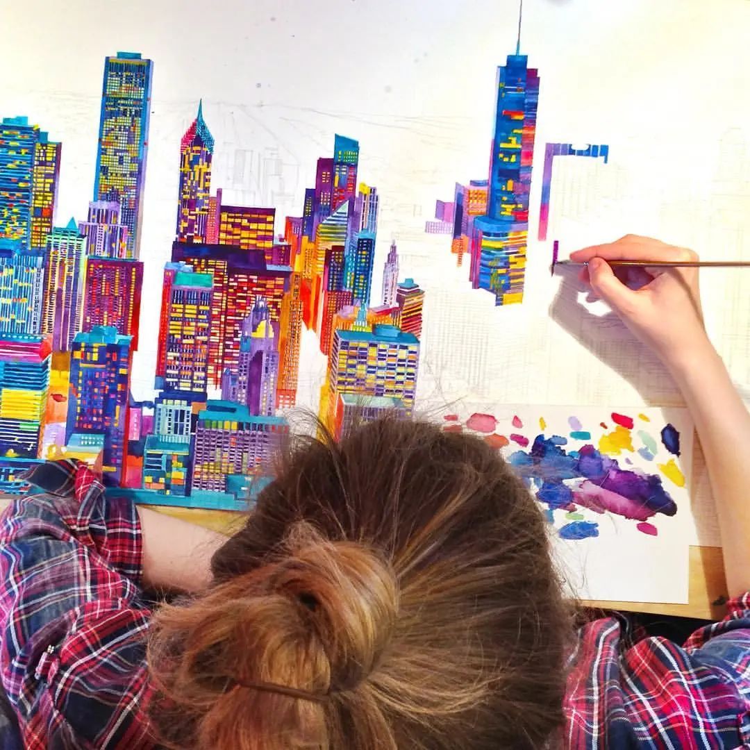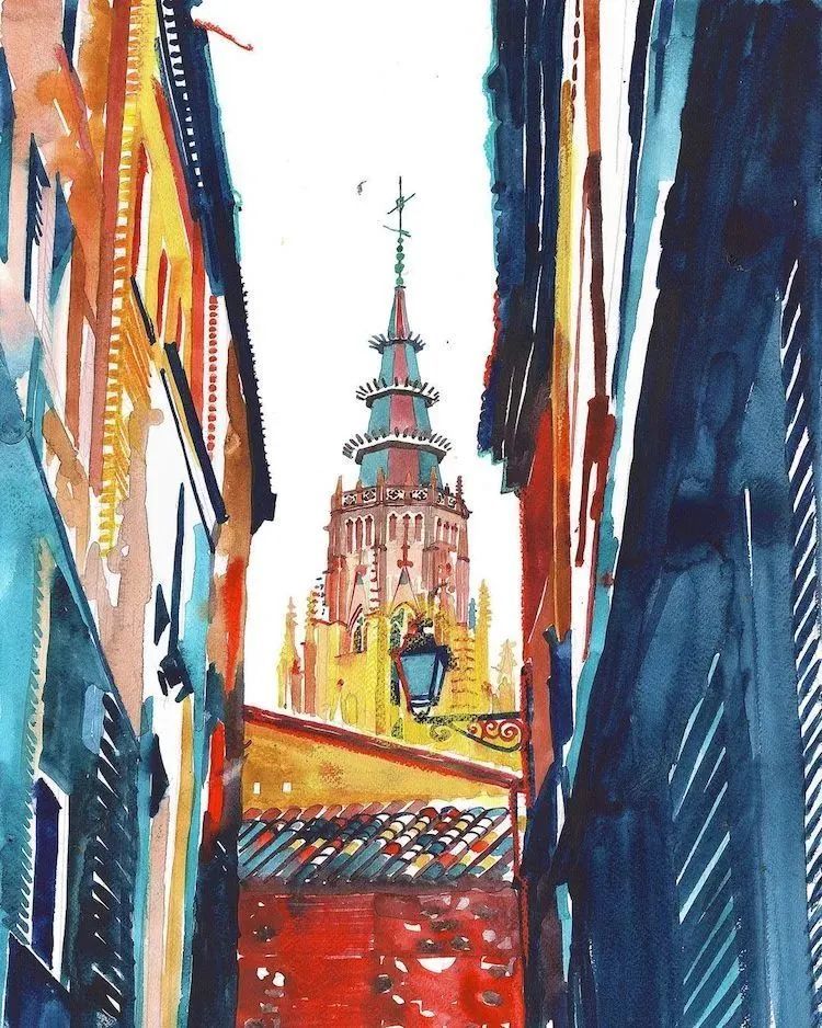 而且她能将水彩色彩运用到极致